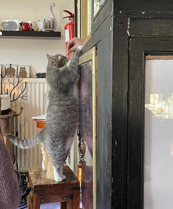 13The courteous kitty placing an order for treats.