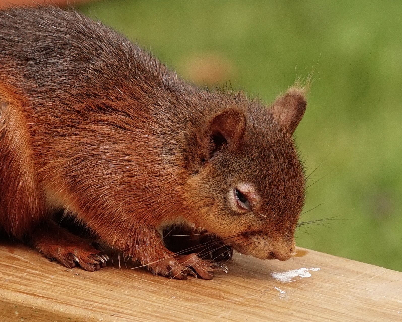 “This squirrel managed to conquer the severest squirrel pox case I’ve come across and is on its way to recovery. There are some ugly scars, but most functions seem to have returned, and it’s starting to socialize a little as well!”