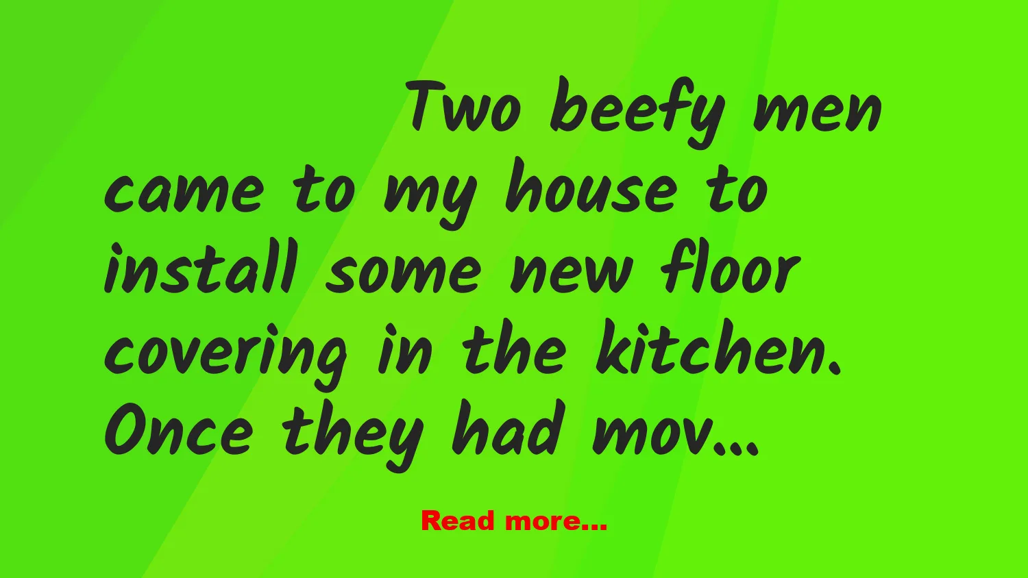 Two beefy men came to my house to install some new floor covering in the kitchen.