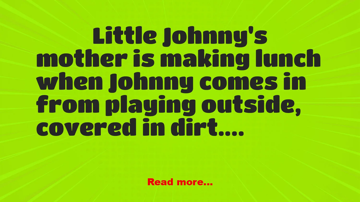 Little Johnny’s mother is making lunch when Johnny comes in from playing outside, covered in dirt.