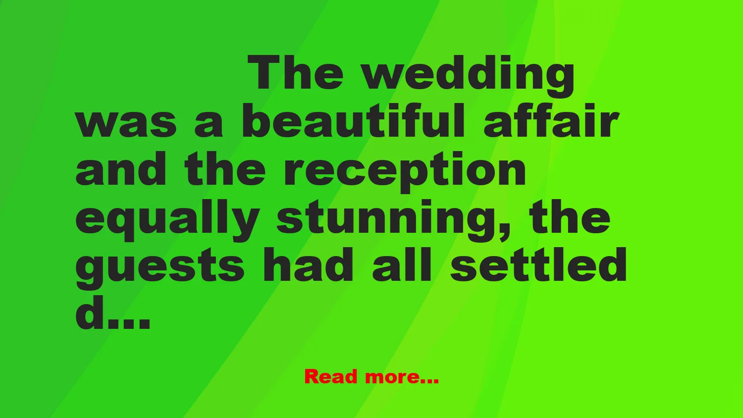 The wedding was a beautiful affair and the reception equally stunning, the guests had all settled down with drinks in hand.
