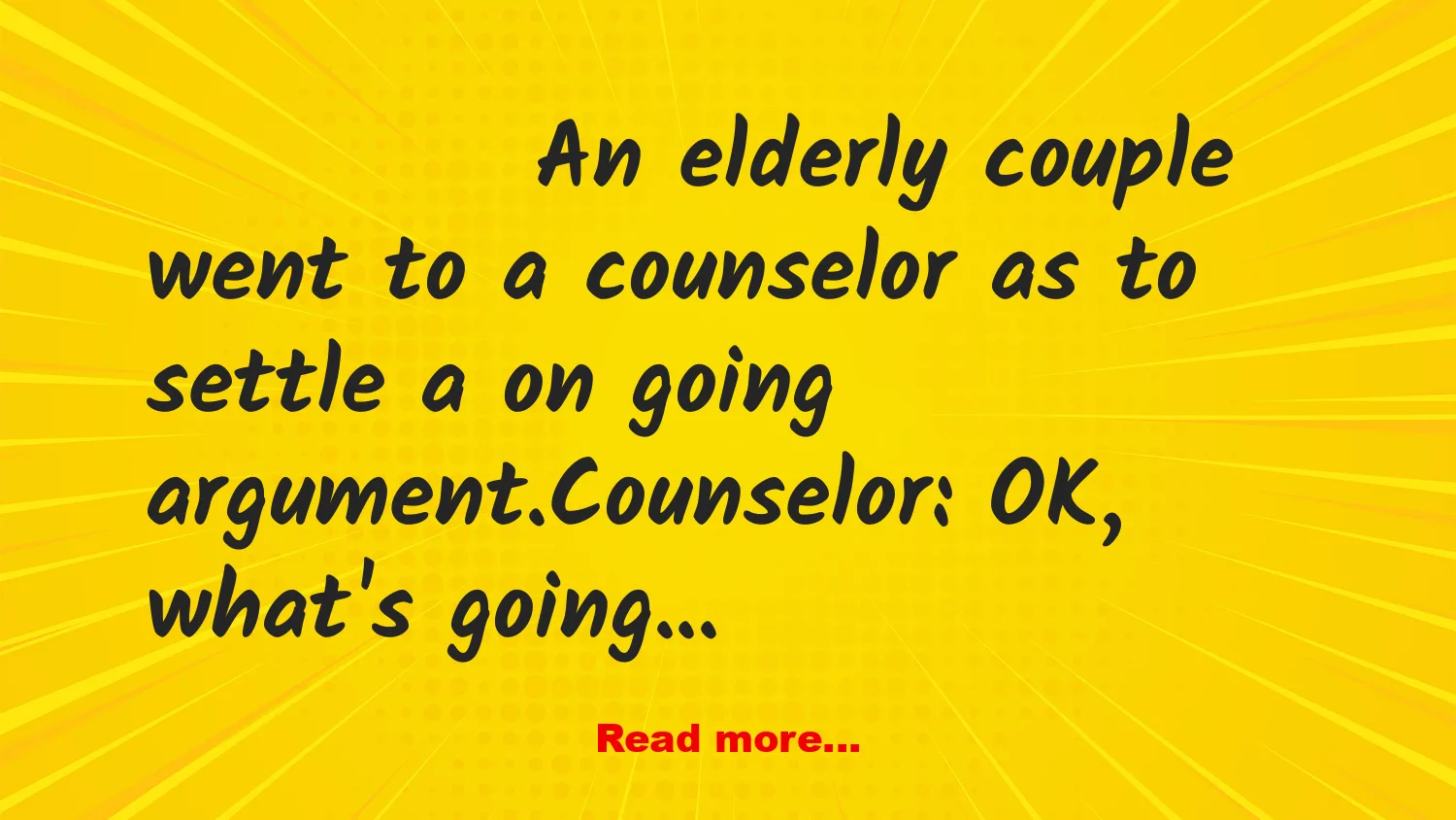 An elderly couple went to a counselor as to settle a on going argument.