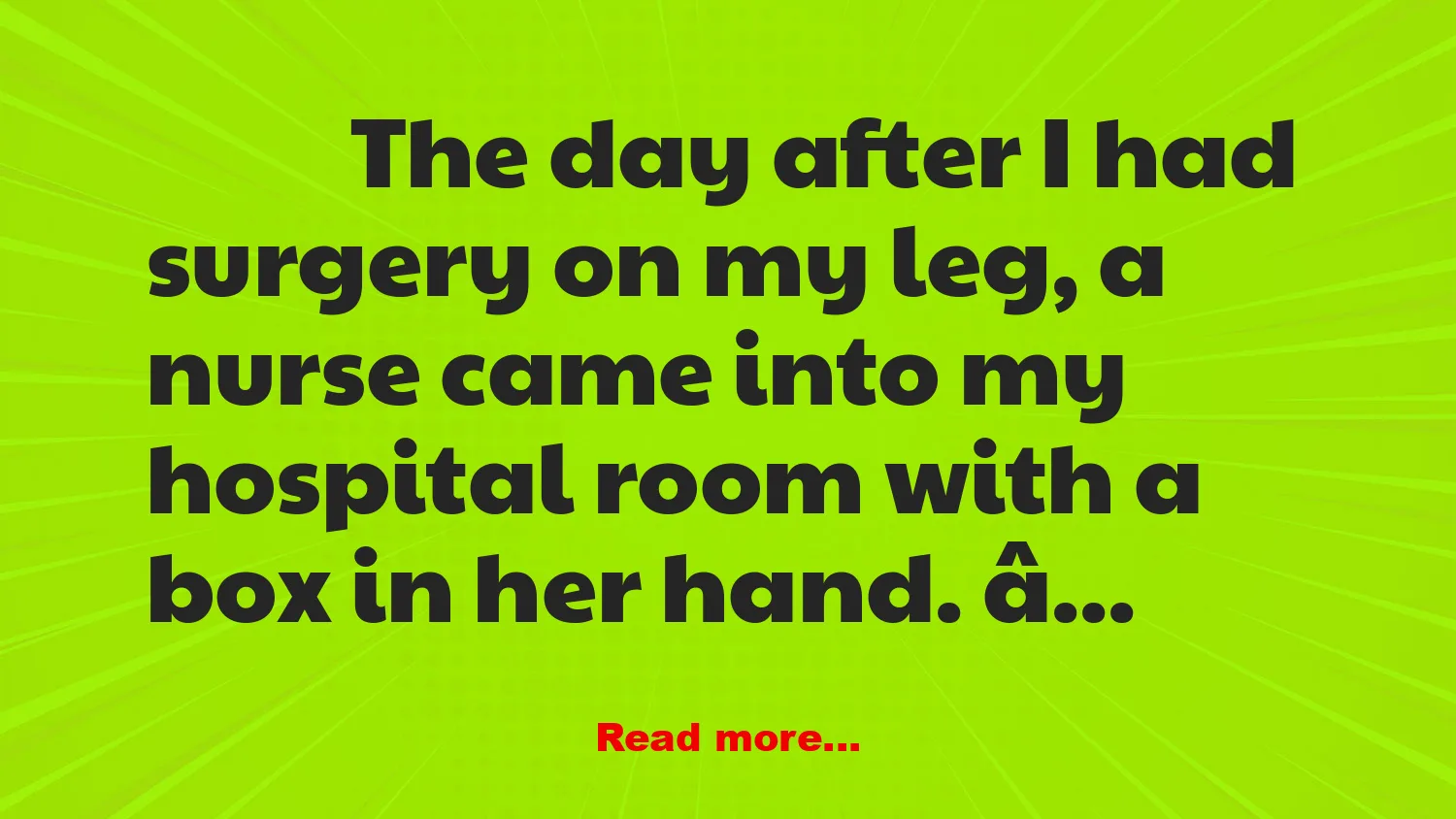The day after I had surgery on my leg, a nurse came into my hospital room with a box in her hand.
