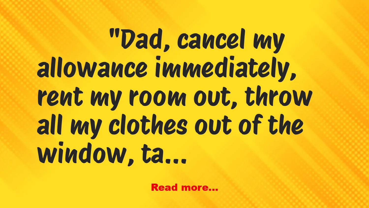 “Dad, cancel my allowance immediately, rent my room out, throw all my clothes out of the window, take my TV, and stereo, and iPhone, and iPod, and my laptop.