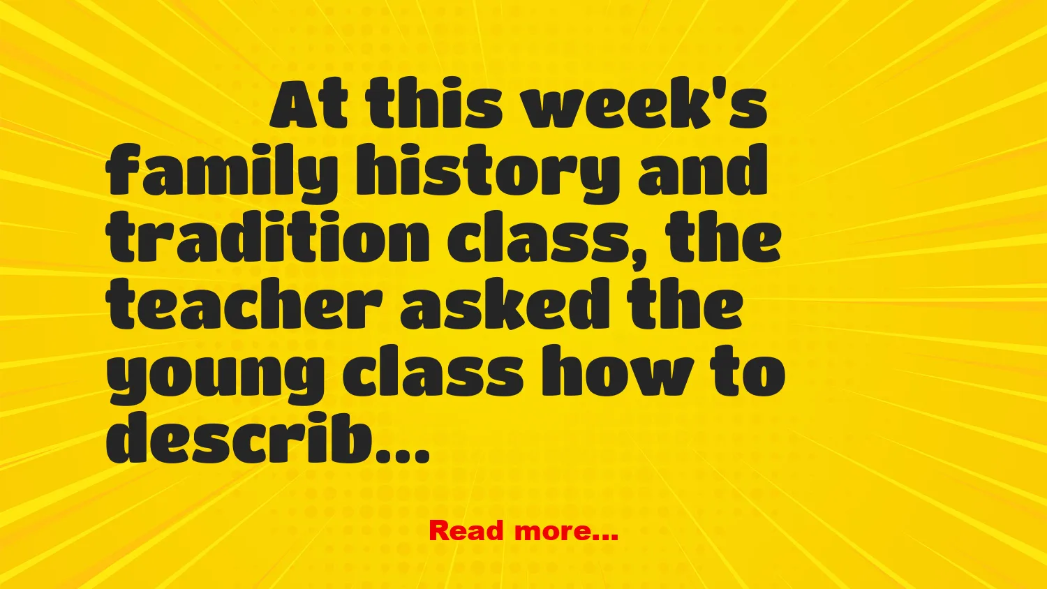 At this week’s family history and tradition class, the teacher asked the young class how to describe old folks.