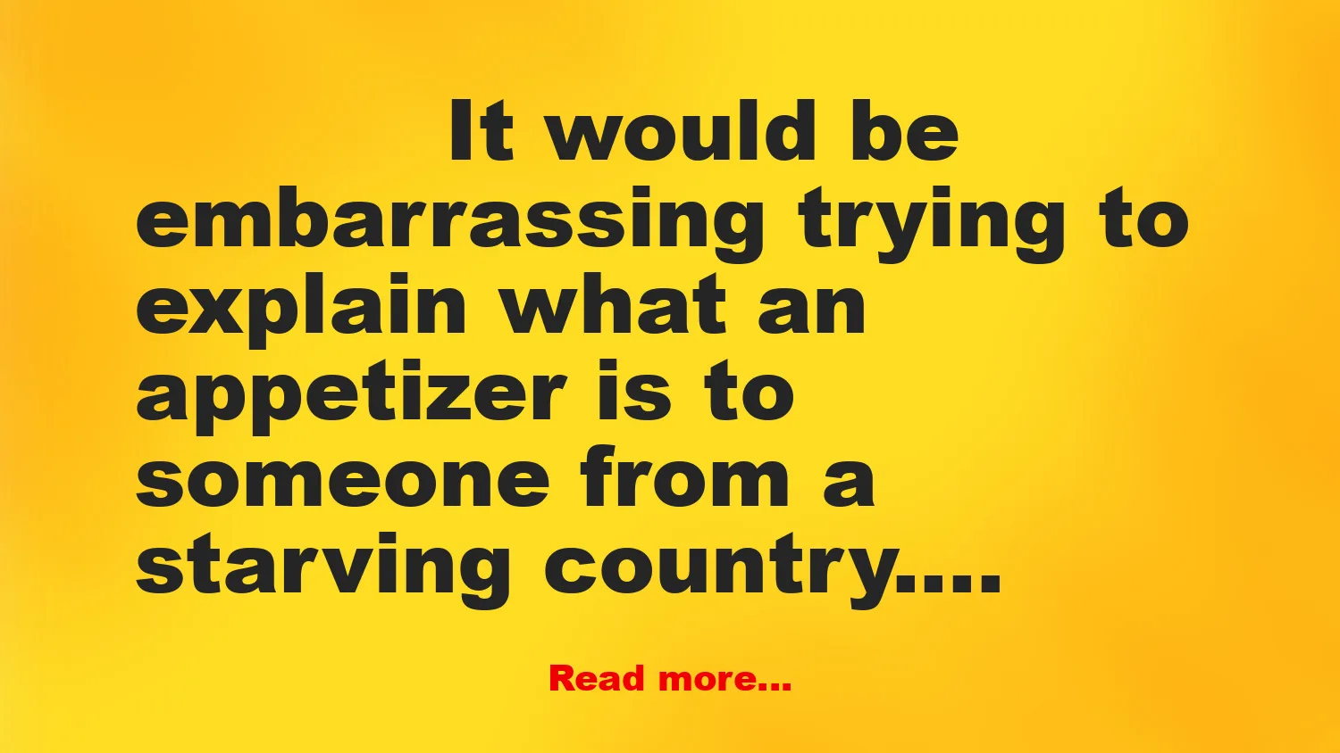 It would be embarrassing trying to explain what an appetizer is to someone from a starving country.