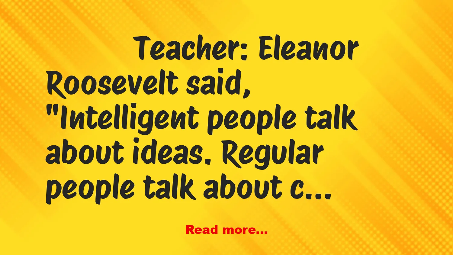 Eleanor Roosevelt said, “Intelligent people talk about ideas.