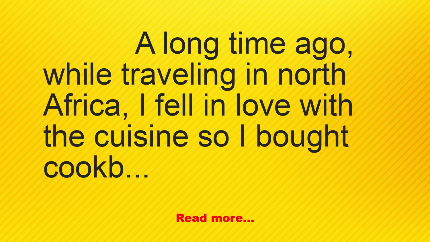 A long time ago, while traveling in north Africa, I fell in love with the cuisine so I bought cookbook while I was in Morocco.