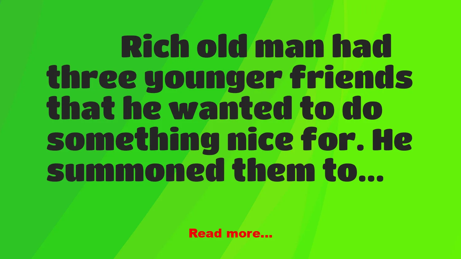 Rich old man had three younger friends that he wanted to do something nice for.