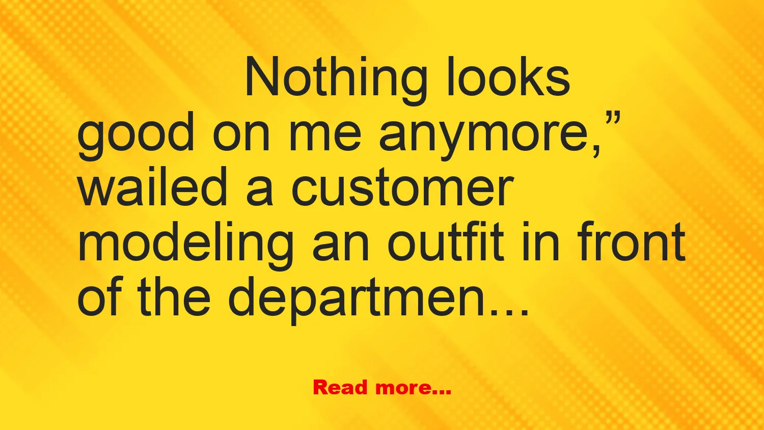 Nothing looks good on me anymore,” wailed a customer modeling an outfit in front of the department store’s mirror.
