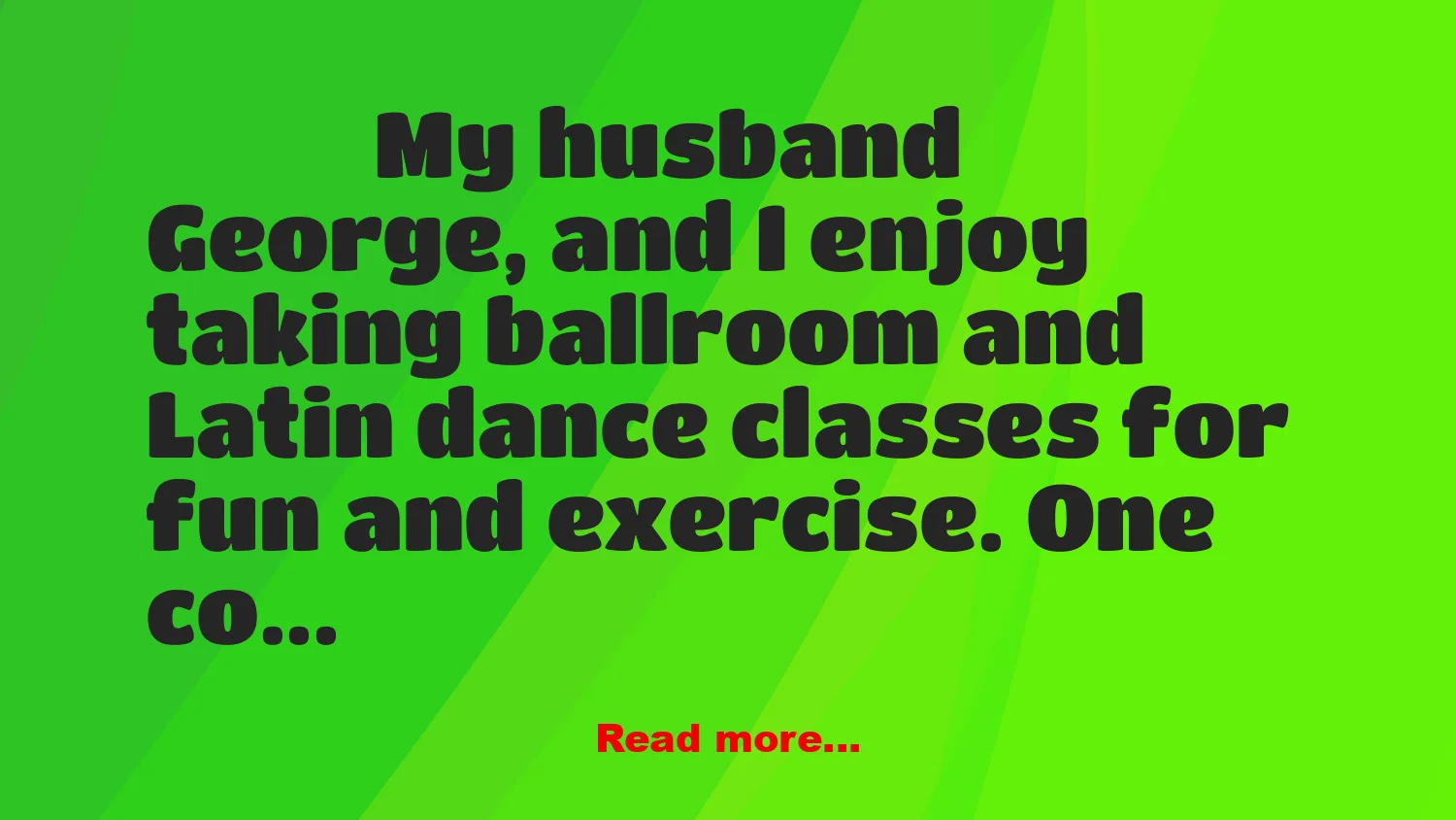 My husband George, and I enjoy taking ballroom and Latin dance classes for fun and exercise.