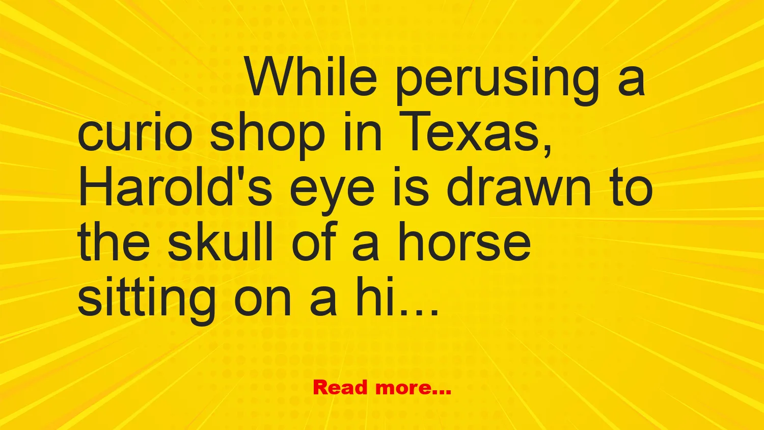 While perusing a curio shop in Texas, Harold’s eye is drawn to the skull of a horse sitting on a high shelf.