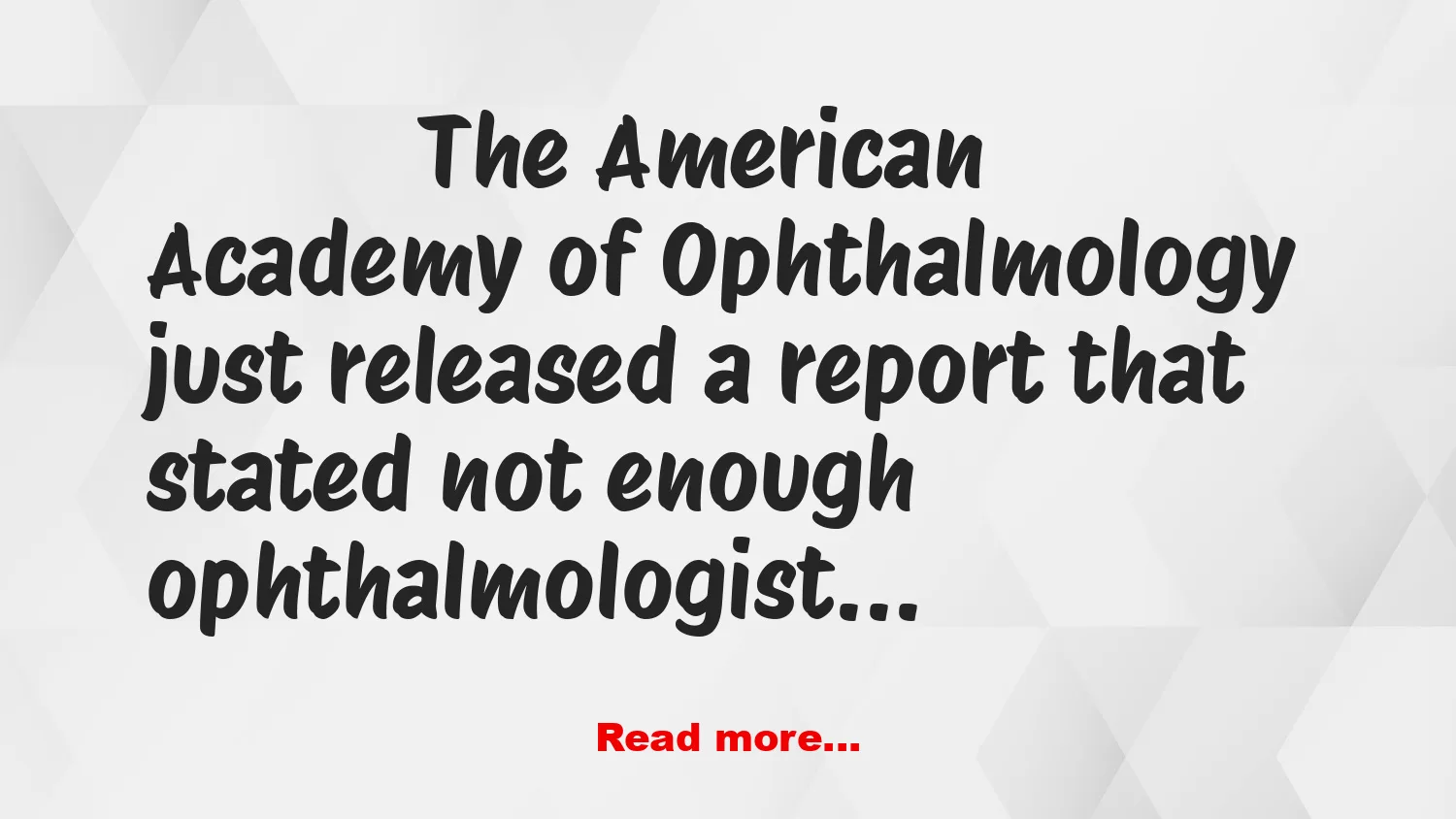The American Academy of Ophthalmology just released a report that stated not enough ophthalmologist will be in practice in the next five years to serve the public need.