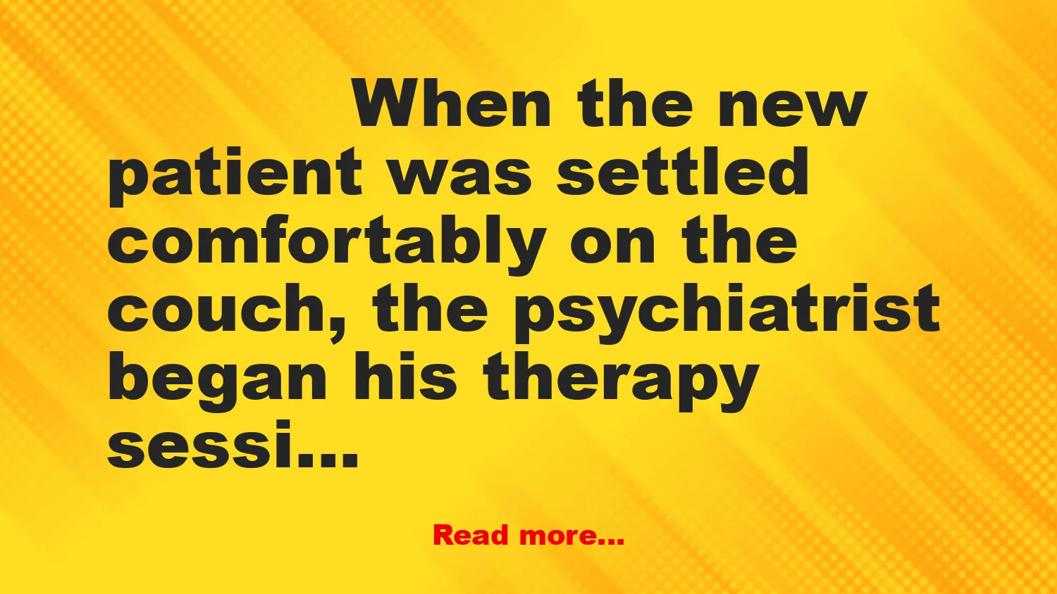 When the new patient was settled comfortably on the couch, the psychiatrist began his therapy session.