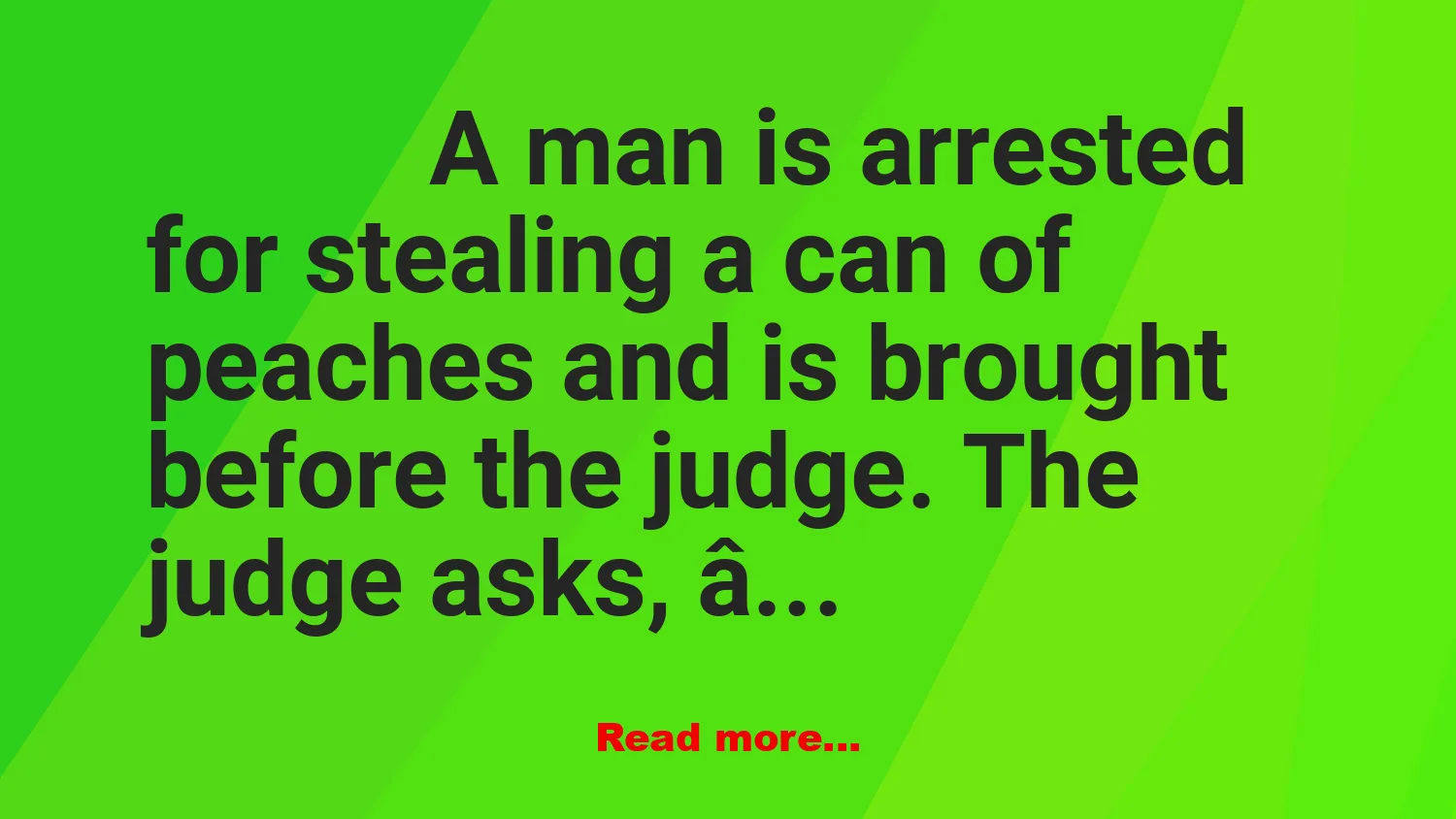 A man is arrested for stealing a can of peaches and is brought before the judge.