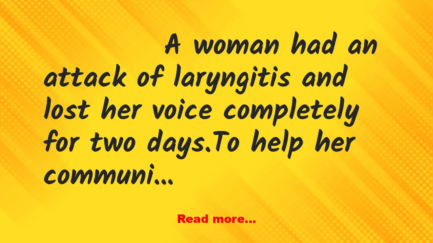 A woman had an attack of laryngitis and lost her voice completely for two days.