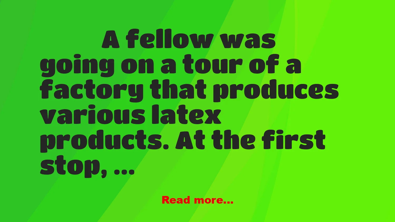 A fellow was going on a tour of a factory that produces various latex products.