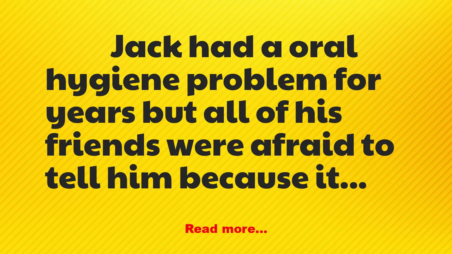 Jack had a oral hygiene problem for years but all of his friends were afraid to tell him because it would probably hurt his feelings they thought.