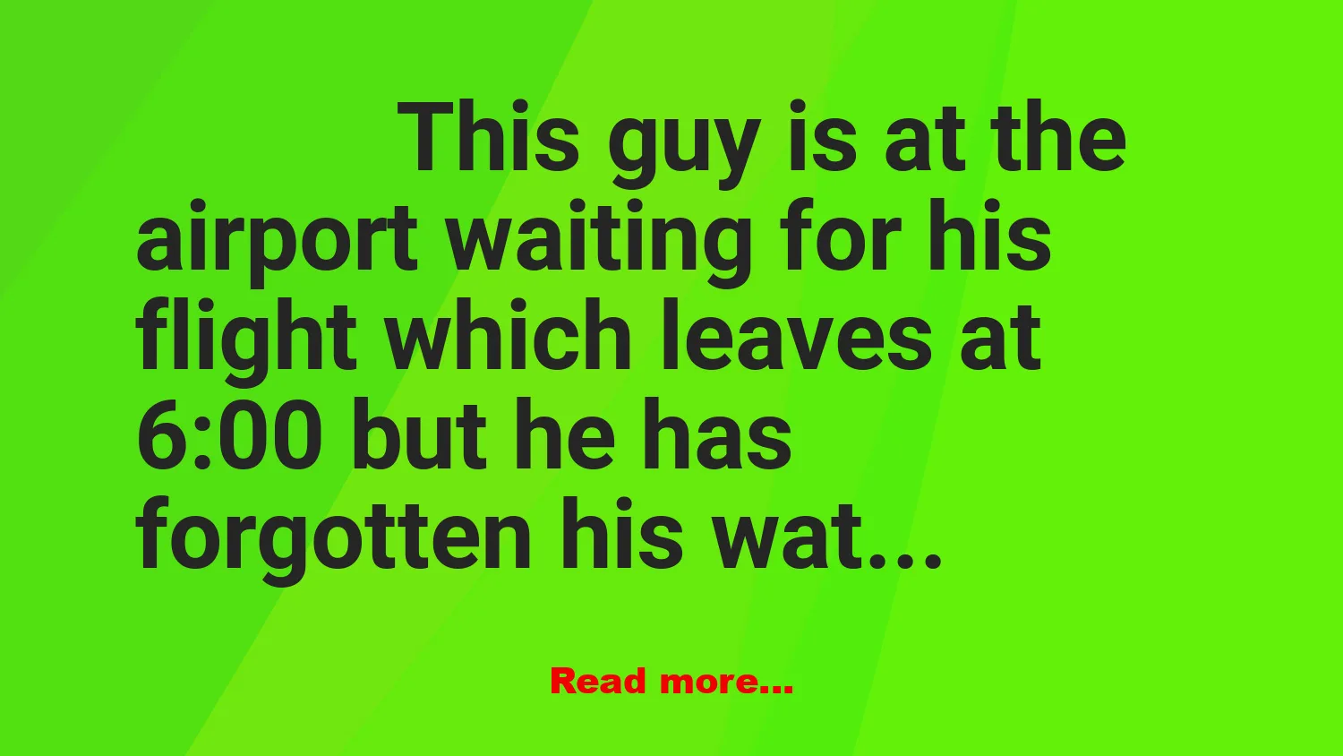 This guy is at the airport waiting for his flight which leaves at 6:00 but he has forgotten his watch, so he looks for someone to ask the time.